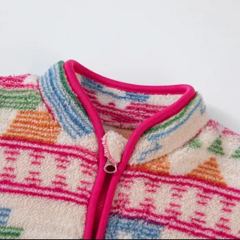 Girls’ Cozy Fleece Jacket with Colorful Lines